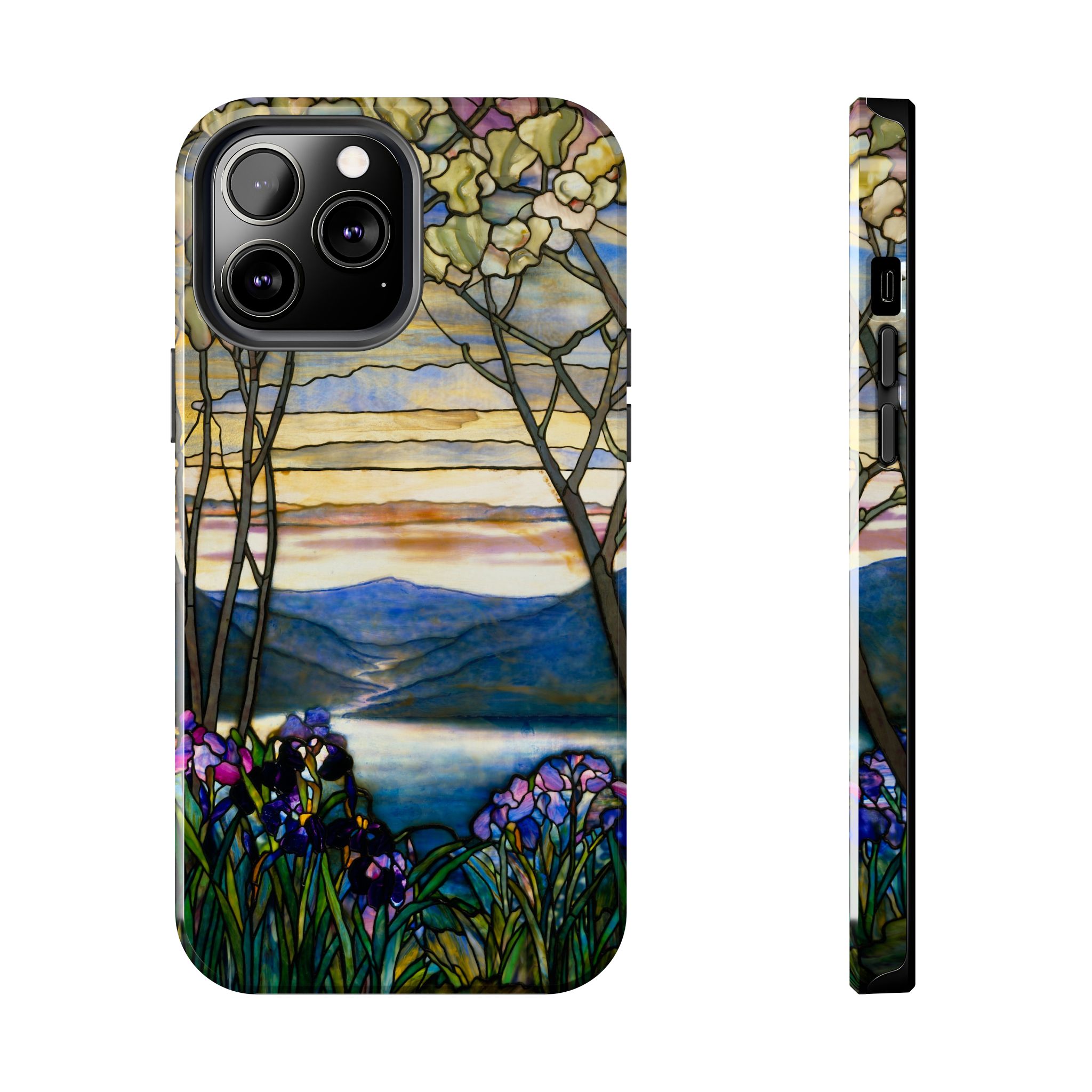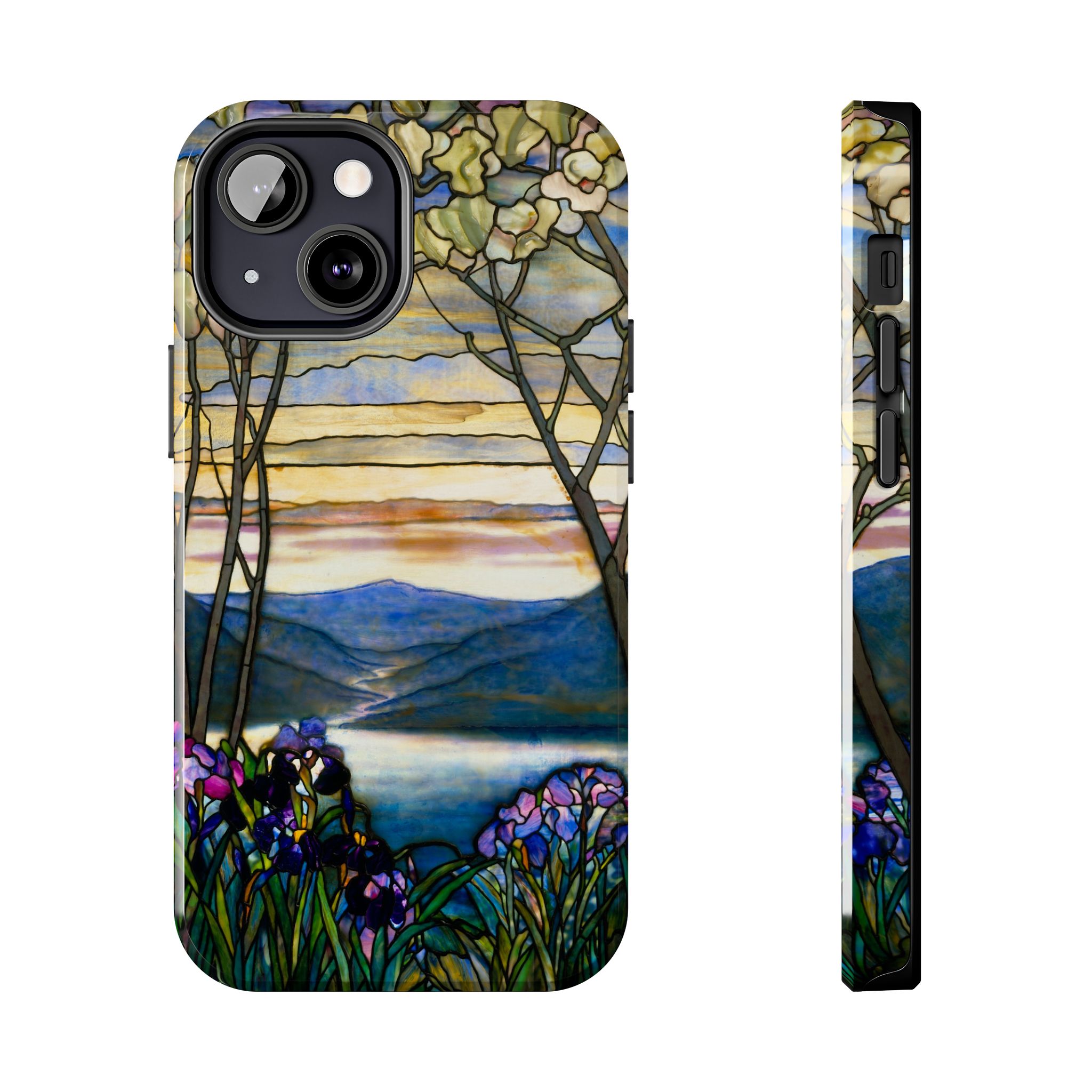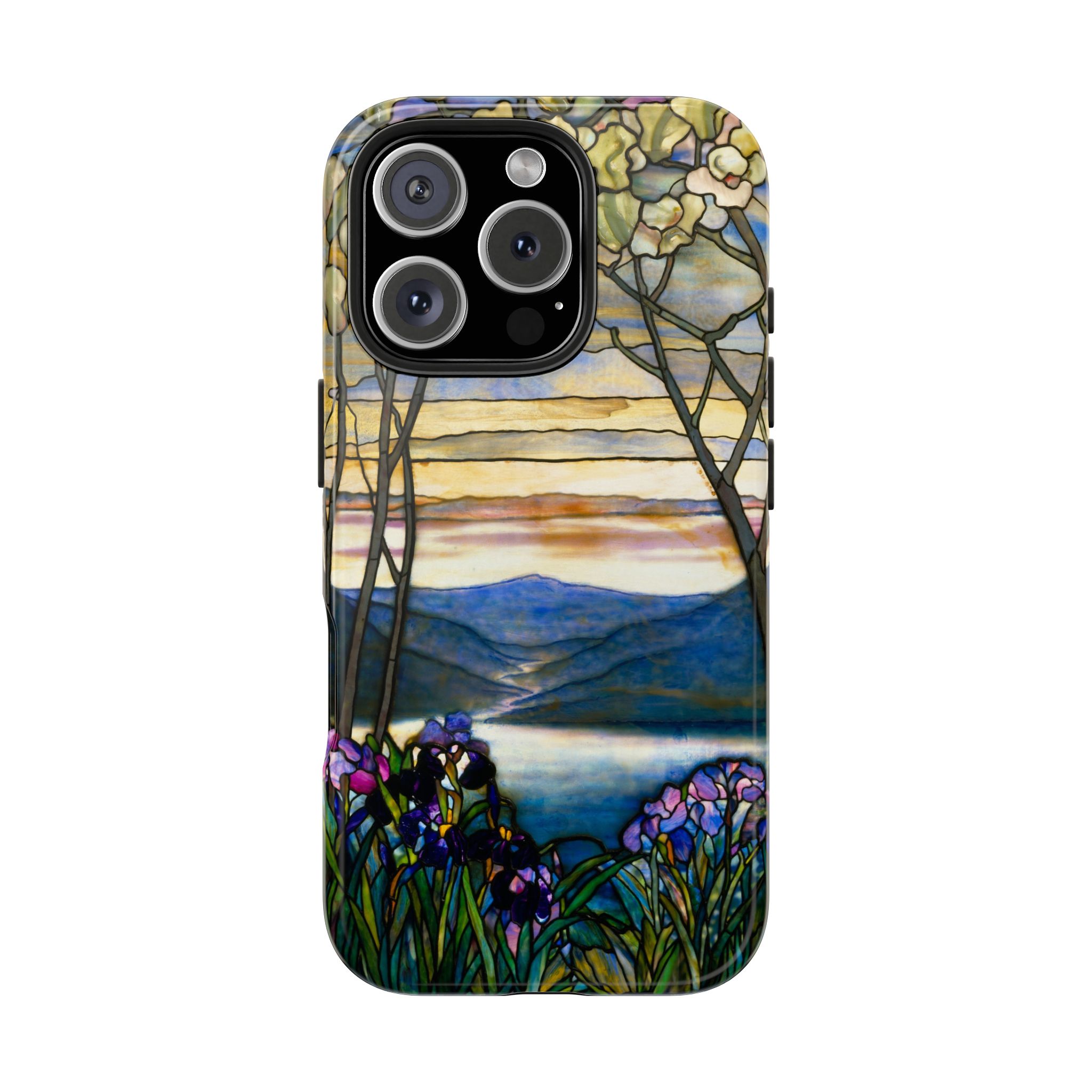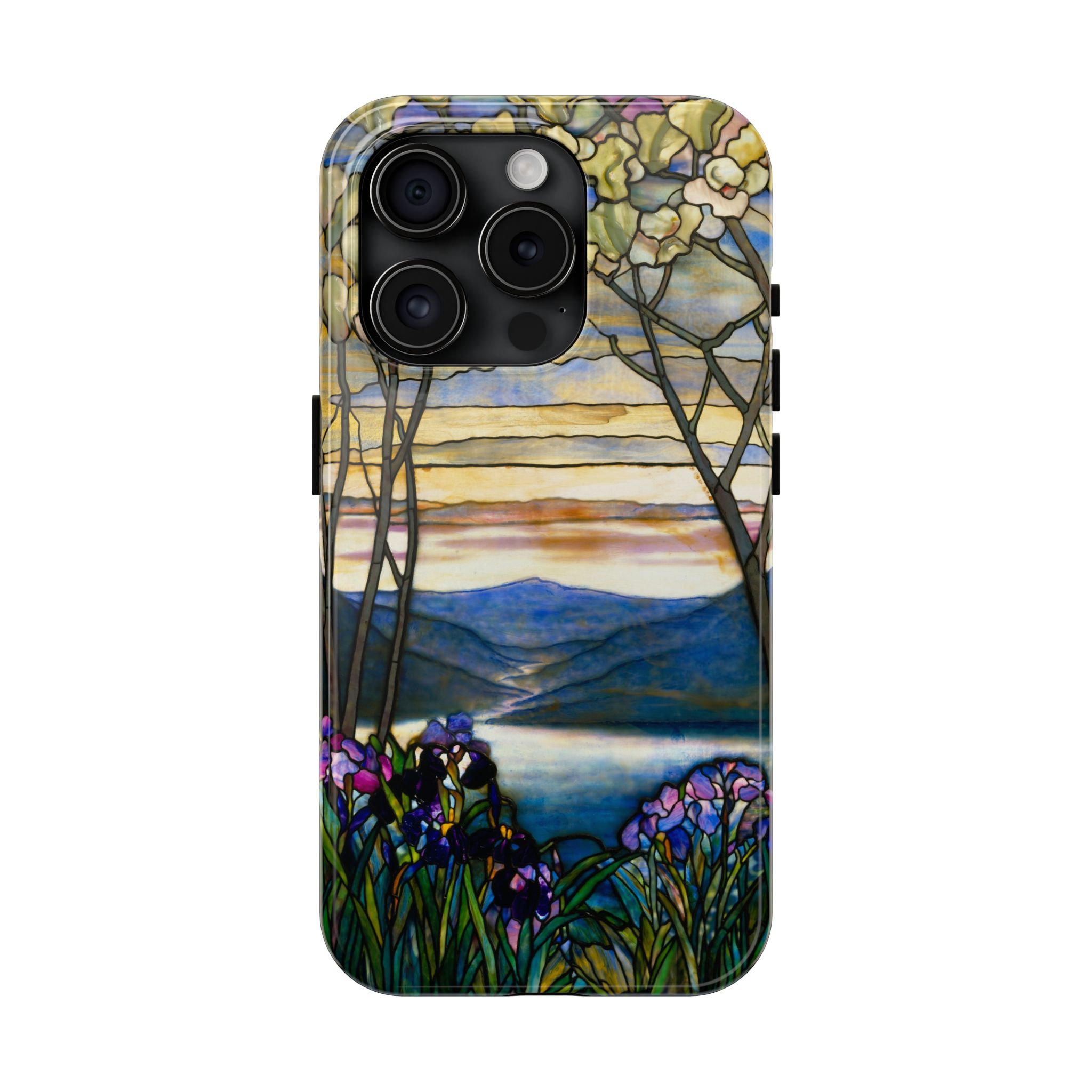 A slim, protective phone case that brings a stained-glass landscape of Louis Comfort Tiffany to your daily life. The scene—soft sunrise over distant mountains, glassy water, and foreground irises—wraps the case in painterly color and quiet, early morning calm. The hard polycarbonate shell and flexible TPU liner of the case form a two-piece protection system for your phone that diffuses shocks and the screen-side bezel guards screen if you lay your phone down upside down. Glossy, UV-protected printing preserves the artwork’s depth and keeps colors vibrant when you use your phone outside. This case enhances the lives of people who cherish artful details and turns routine phone checks into small moments of beauty.