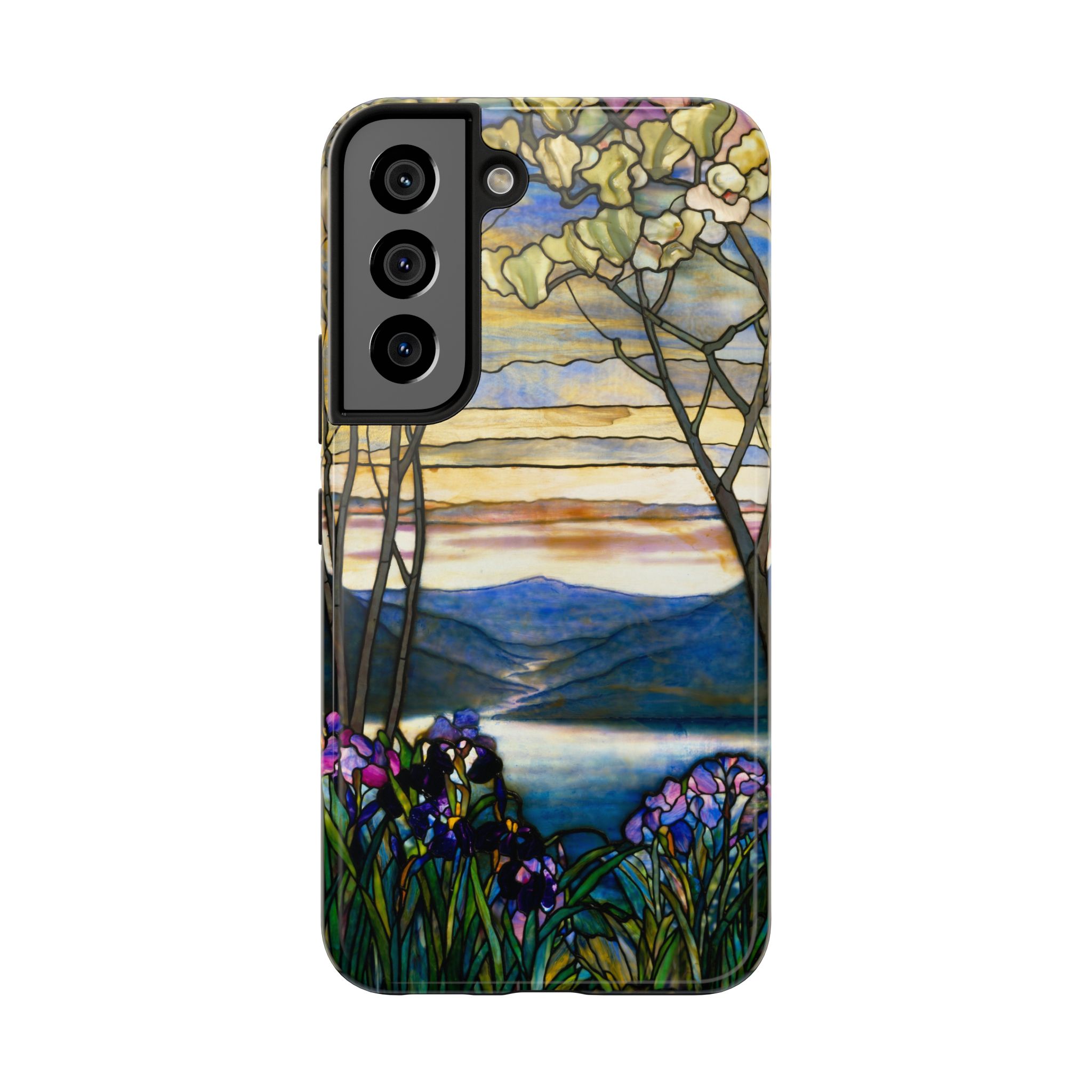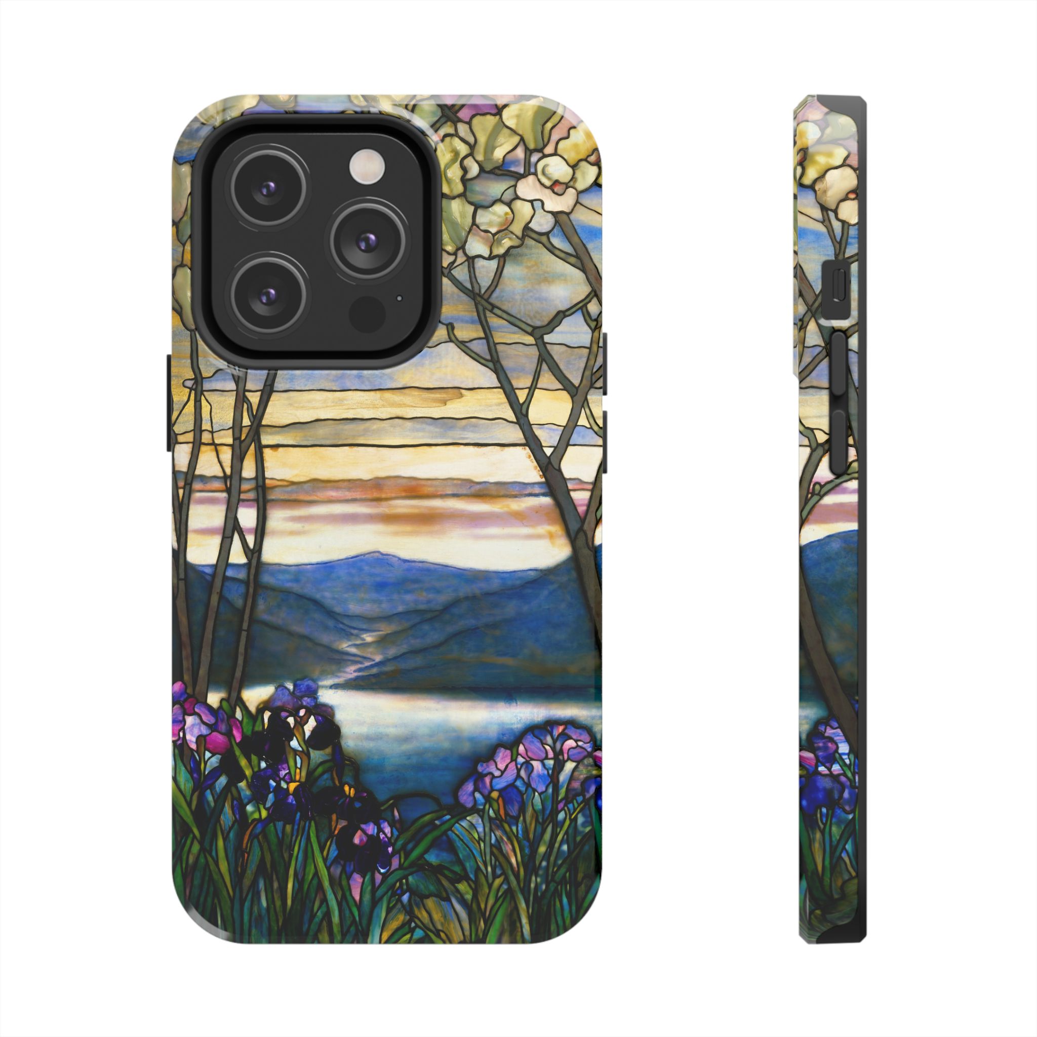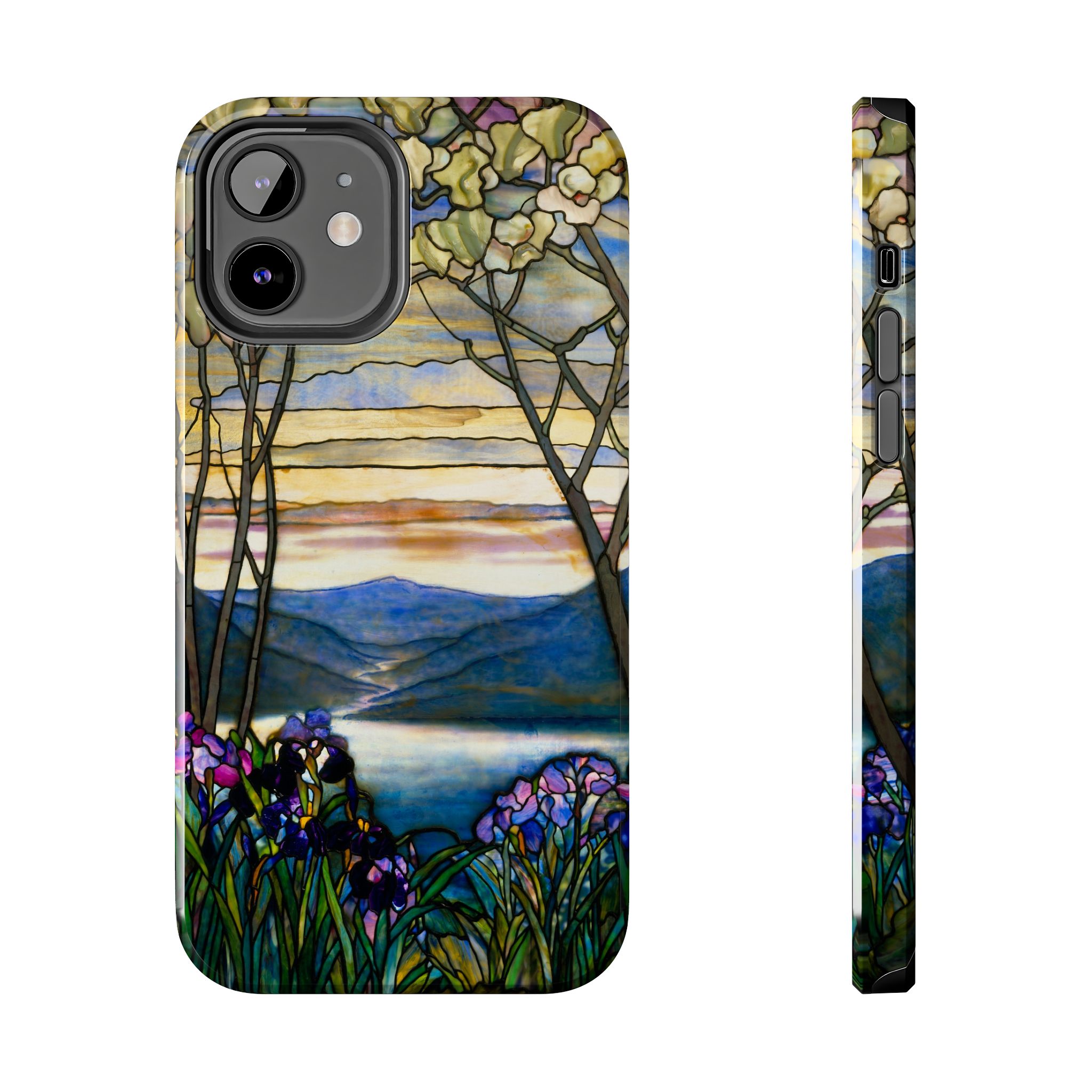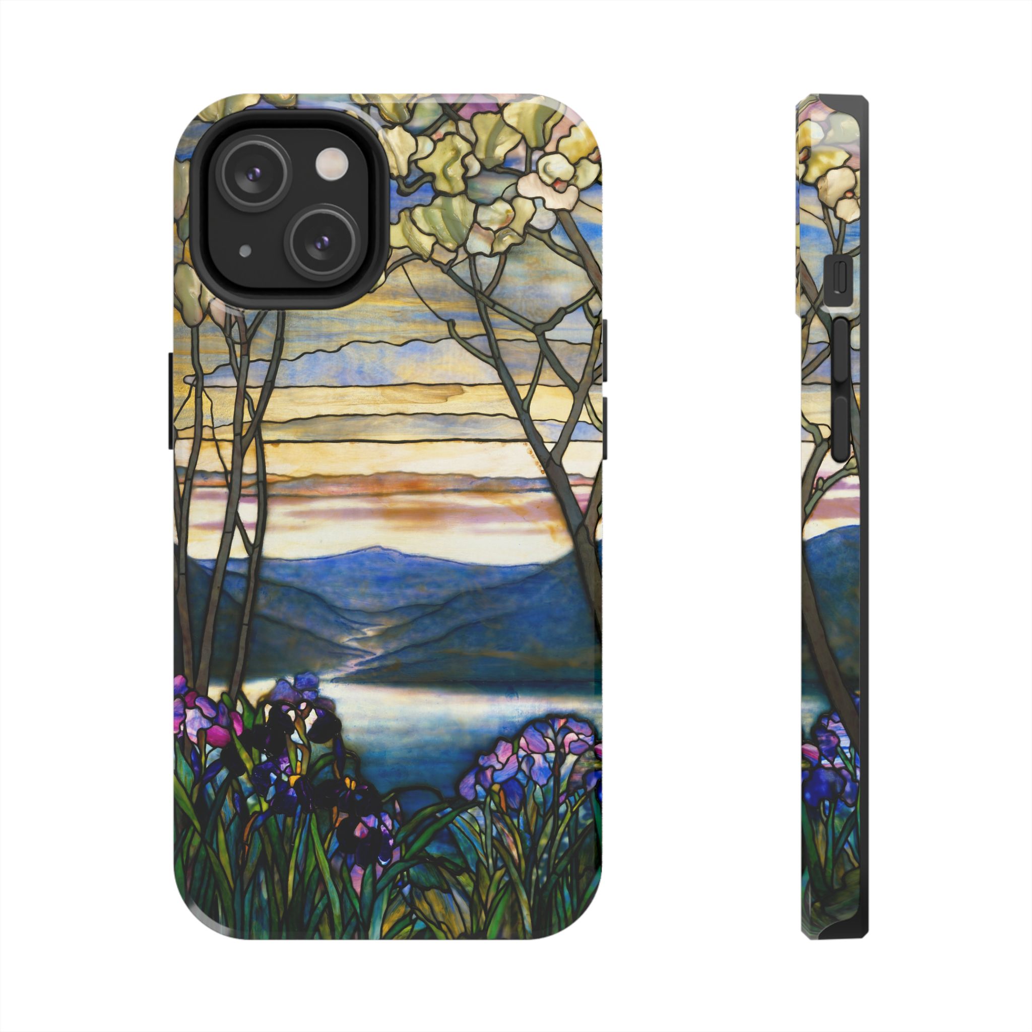 A slim, protective phone case that brings a stained-glass landscape of Louis Comfort Tiffany to your daily life. The scene—soft sunrise over distant mountains, glassy water, and foreground irises—wraps the case in painterly color and quiet, early morning calm. The hard polycarbonate shell and flexible TPU liner of the case form a two-piece protection system for your phone that diffuses shocks and the screen-side bezel guards screen if you lay your phone down upside down. Glossy, UV-protected printing preserves the artwork’s depth and keeps colors vibrant when you use your phone outside. This case enhances the lives of people who cherish artful details and turns routine phone checks into small moments of beauty.